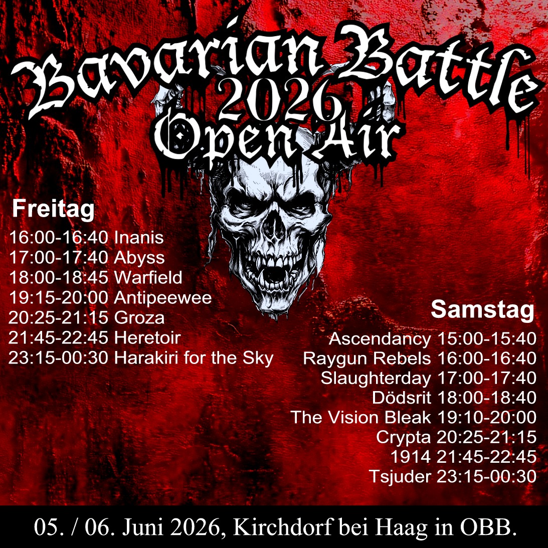Nun ist es vollbracht!Mit Stolz verkünden wir nun nun das komplette LineUp für das Bavarian Battle Open Air 2025.